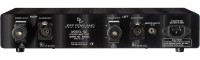 モノラルパワーアンプ「Model-201」などのデザインを踏襲した本機は、アルミブロック削り出しの一体ボディを採用。本体カラーはブラックとした。入力端子は、バランス(XLR)をLRに各1系統。周波数帯域は、5Hz〜65Hz(3dB)を実現している。