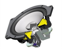 LLD技術による新開発のウーファーユニットは、0.2mm厚のアルミ素材とクルトミュラー製のペーパーコーンによるハイブリッド振動板を採用。ネオジウムマグネットは5枚を組み込んでいる。また、巻線高6.5mmの短巻線状コイルや高さ16mmのロング・エアーギャップを採用することで歪みの少ないリニアな動きを実現しているという。