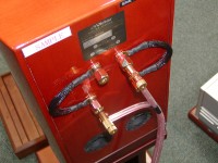 背面のスピーカー端子は真鍮削り出し。ショートワイヤーには内部配線と同じワイヤーを4本使用している。また、2本ずつ縒り方向を変えてインダクタンスを打ち消すなどの工夫も施している。