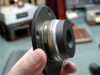底面には真鍮削り出しのフットを装備。回転させてがたつきを調整する機能を備える。