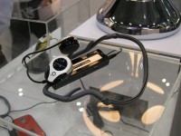 ヘッドホンといえばもう一つ、ゴールデンダンスの「オーディオボーン」というのが面白い。何と骨伝導ヘッドホンである。耳穴のすぐ前方、下あごの骨の付け根部分に振動体を押し当てると音が聴こえてくるという、何とも不思議なヘッドホンだ。従来から製品としては発売されていたそうだが、従来機は専用アンプが必要だったとか。本機は一般のヘッドホンプレーヤーに直接つないで楽しめるというからうれしい。また、これを用いれば難聴の防止、あるいは緩和の効果が期待できるともいわれている。これはヘッドホンステレオ時代に大きな朗報となる可能性を秘めたシステムともいえるだろう。