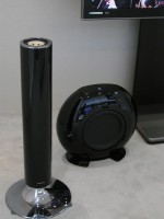 ほかに面白い参考出品や技術を挙げていくと、まず目に止まったのはシャープの円筒形スピーカーだ。タイムドメイン社のスピーカーとよく似た格好を持つ製品である。ユニットは10cmのフルレンジで、KEF社のSWが組み合わされていた。音は実に素直で結構な解像度を聴かせてくれる。残念ながら発売については何も決まっていないそうだが、ちょっと期待したくなるシステムである。