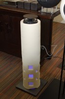 ユニットが上向きに付いた筒状のモデルは9割9分完成しており最終調整中とのこと。インテリアの一部としても使えそうな外観が特徴だ。
