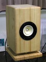 カイザーサウンドの試作スピーカー。フィーストレックスのフルレンジは、能率は極めて高そうだが、低音を出すのには大変なテクニックを要求されそうなユニットである