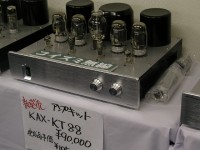 その隣はコイズミ無線のブースだ。同社といえばスピーカー工作のパーツ専門店というイメージが強いが、この会場が初お目見えとなる真空管アンプキットが展示されていた。6L6、6CA7、KT88というビーム/5極管のプッシュプルというキットとしては比較的大がかりな構成ながら、一番高いKT88でも9万円という価格がうれしい。小泉社長によると、このキットは少々組み立てが難しいので、基板組み立て済みの簡単キット構成にすることも考えているとか。そうなるともう少し価格は上がらざるを得ないだろう。