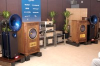 ティアック エソテリック カンパニーのブースでは、エソテリックの新製品や、アヴァンギャルド・アコースティックのホーン型スピーカー、タンノイの新スピーカーなど見どころが盛りだくさんだ。