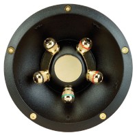 スピーカーターミナルは、スピーカー端子とアース端子を円形状に配置した、タンノイ独自のものを採用。バイアンプやバイワイヤ駆動にももちろん対応している。