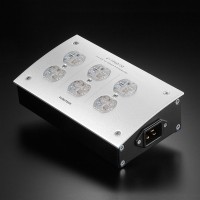 同モデルは20A対応の電源ケーブルを標準で付属させ、タップ内部の配線も20A対応としたものである。新開発のAxial Locking(アーキシャル ロッキング)システムも採用し、コンセントの固定も飛躍的に強化。内部には電磁波を除去する素材であるGC-303も施されており、ノイズ対策も万全の6口タイプとなっている。