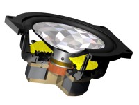 クルトミューラ社のパルプにアルミニウムという異なる反響特性を持つ素材を貼り合わせたハイブリッドウーファーはエラックのスピーカーの特徴である。本シリーズでは、アルミコーンの表面処理にクリスタルライン加工を採用し、強度を高めるとともに、倍音振動のさらなる減少や放射特性の最適化、クロスオーバー・ゾーンでの部分的な振動歪みの防止、さらには倍音の歪み自体の減少を実現している。また、クリスタルラインの高い強度性能により、パルプとの高い密着性も実現され、周波数レンジの拡大や、より滑らかで調和のとれた美しい音質の確保にもつながっているという。