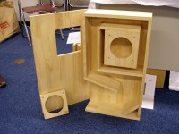 同社では長年スピーカーキャビネットのキットを取り扱ってきているが、今回登場したのはスパイラルホーンキットである。発売はいま少し先ということだが、オリジナルユニット付きでペア5万円ほどの価格を予定しているという。構造的にはバックロードホーンと同じタイプとなるのだが、取り付け口径の違うユニットでも装着できるよう、ユニット周辺部を切り抜いてあるキャビネット構造はユニークである。