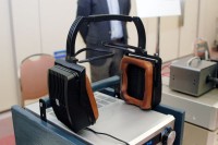 テイクティは、同社新製品となる、高分子圧電ハイル型のコンデンサーヘッドホン「TAKET-H2」の試聴デモを行っていた。TAKET-H2は140,000円(税込)で、再生周波数は10Hz〜100kHz以上。出力10W+10Wとなっている。