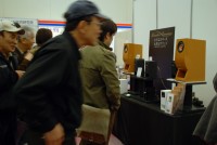 長谷弘工業(HASEHIRO AUDIO)の展示ブースを横切った際に流れていたジャズの音を聴き、ハイエンドなピュアオーディオ機器の展示だと思い近づいてみる。すると、驚いたことに鳴っているのは小型スピーカー、しかも繋がれているのはiPodなのである。