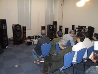 この部屋ではティアックエソテリックカンパニー、ナスペック、エレクトリ、ハイ・ファイ・ジャパン、ユキムの取り扱い製品を展示、デモを行っていた。注目したいのはMAGICOのスピーカーシステム「V3」が登場したこと。メトロノーム・テクノロジーのシステムとの組み合わせでのデモが行われていたほか、エソテリックより登場した最新モデル、「C-03」「A-100」も九州に上陸し、注目を集めている。また、真っ赤なボディでおなじみのシンセシスのコンポーネント群や、MONITOR AUDIOのフラッグシップスピーカー「PL300」、ELAC「FS247」も展示され、来場者の熱い視線を浴びていた。