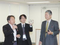 ハードガラスCD再生のステージには、ディスクの開発に携わったエヌ・アンド・エフの福井氏もゲスト参加し、ハードガラス製ディスクの開発秘話や特長を語った。