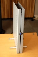 筐体はブラックとシルバーの2種類を用意。また、本体側面の支柱を付け替えることで、横置き/縦置きの両方に対応する。本体前面の、LINNロゴバッジは回転させることが可能で、縦/横どちらでもロゴの向きが変わらないよう工夫している。