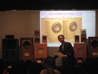 ソフト・ウォーム系アンプとシャープ・クール系アンプの再生の間には「ウインズタイム」というコーナーが設けられ、長野県のペンションウインズのオーナー兼スピーカー製作者である村瀬氏による講演も行われた。