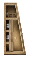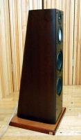 また、本機では新たに内部を2つの独立した構造とした“スタガードバスレフ構造”を採用。上部1.9cmトゥイーターと14.5cmウーファーの13Lキャビネット、および2本の19.0cmウーファーの43Lキャビネットを分割して設けることにより、小型2ウェイのSX-M3が持つ良さと、新規パルプコーンウーファーの良さを併せ持った音を生み出すことが同社のねらいであるという。またキャビネット側板にはMDFをチェリー突き板でサンドイッチした板材を用いるとともに、チェリー無垢材の響棒による側面補強を施し、キャビネットの響きをコントロールしている。