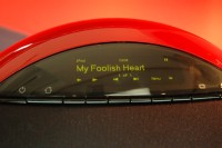 本体搭載のディスプレイは有機ELを採用。i80との接続時には、iPodのメニュー画面と連動してアーティスト名や再生中の楽曲を表示するインターフェースも実現している。
