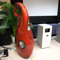 そしてステラヴォックスジャパンのブースでも、スーパー・ハイエンドなシステムが披露されていた。GOLDMUNDモノラルパワーアンプのフラッグシップ「TEROS 5000」、そしてVIVID audioの“魔人ブウ"みたいな形のトップモデル「G1 GIYA」。