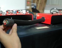 CSEからはノイズフィルター「NFW-100」が参考出展。発売は年末頃で価格は「20万円以下を目標にしている」(担当者談)という。コンセントボックスにノイズフィルターを搭載した本製品はノイズ除去部分とコンセントボックス部分が分離したセパレート構造となっている。電源ケーブルは28Sqで伝送ロスを低減させた。