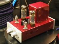 今回アンプで最も驚かされたのはトライオードだ。昨年はKT88×2パラプッシュプルのモノーラル・パワーアンプ「TRV-M88PP」で満場の度肝を抜いたが、今年は845シングル・ステレオパワーアンプである。しかも価格は40〜50万円くらいに収まるとか。試作品の音が聴けたが、この力感と立ち上がり/立ち下がりの良さは845でなければ味わえないと思わせるに十分なサウンドだった。