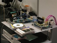 実は、今回のショウで最も驚いたブースは六本木工学研究所だった。昨日組み上げたばかりというアンプキットの開発バラックと、同社のスピーカーキットで音を流していたのだが、一体何という高品位サウンドか!じっくり眺めればそれもそのはず、スピーカーキットにseasのexcelウーファーとトゥイーターが用いられているではないか。どちらもマグネシウム合金で、特にトゥイーターはマグネシウム含有量96%の最新製品である。この組み合わせは100万円のスピーカーに使われていてもおかしくない。もうひとつ、少し安価なユニットとして仏ダヴィスのウーファーとseasのprestigeトゥイーターを組み合わせたセットも鳴っていたが、こちらは超ハイスピードに散乱して広大な音場空間を描き出すような開放感あふれる鳴り方が好ましい。アンプもそれらの持ち味を存分に聴かせていたのだから大したものだ。発売されたら私もワンセット組んでみようかと思う。