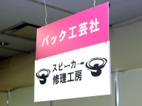 バック工芸社では、Iルームでの音出し展示のほかにサイレントブースにも出展。こちらでは「スピーカー修理工房」の看板を掲げ、各種スピーカーの修理について来場者に説明をしている。