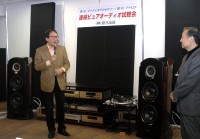 会場は多くのオーディオ、音楽愛好家で賑わい、開始当初から50席近く用意されたイスは満席となり立ち見客も多く大盛況であった。