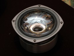 サブウーファーとミドルレンジスピーカーは土台部分にアルミを使い、エンクロージャーとコーンの素材に職人の手吹き技術によって作られた耐熱ガラスを採用している。同社では、コーンを耐熱ガラスで製作した世界初のスピーカーとして特許を申請する予定だとしている。