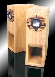 本商品は、バックロードホーン形式のエンクロージャーによるスピーカーキット。 “ラバーウッド”の集成材を削りだして作られたエンクロージャーは、バックロード特有の豊かな低音と、適度な響きを実現しているという。天然ゴムを作る際に、油分を抜き取った廃材を活用したラバーウッドは高比重で硬度もあり、安定した響きを備えているほか、サンドペーパー等での加工も容易に行え、キットとしての作業性も高い素材であると紹介されている。