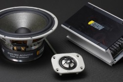 ミッドレンジは、中空のハニカム構造コア材をアラミド繊維でサンドイッチし成形した三層構造のHEXAコーンを採用。軽量かつ高剛性、適度な内部損失を持ち、中低域をダイナミックに再生する。トゥイーターとミッドレンジへの周波数分割には、英国ICW社製Clarity Capカスタムコンデンサーや大型空芯コイルなど高級音響用パーツを使用する新開発のパッシブクロスオーバーを搭載。デジタルクロスオーバーを使用したシステム構築用に、パッシブレスモデルも用意されている。