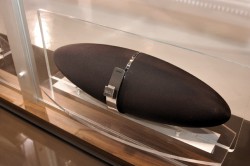 一つは同社初のフロントサラウンドシステム「Panorama」。薄型テレビの下に設置するスタイルの製品だ。合計9つのドライバーユニットを内蔵しており、センタースピーカー部は2基のウーファー、2基のミッドレンジ、1基のトゥイーターで構成される。なお、トゥイーター部にはNautilus Tubeテクノロジーが用いられている。そのほか、残り4基のドライバーユニットも用い、壁反射などを利用してサラウンドを実現する。同社の説明員によると、サラウンド再生だけでなく、ステレオ再生でも高音質を実現しているとのこと。