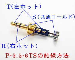 ステレオミニプラグ接続のケーブル自作や、先端のプラグ付け替えのほか、ヘッドホンのプラグ周りの断線などのトラブル対策にも用いることができ、非常に重宝する端子だ。なお、P-3.5-3TSの結線方法は、通常の3.5ステレオミニプラグと少々異なるので、下記写真を参考に、結線を間違えないように行ってほしいとのことだ。