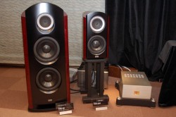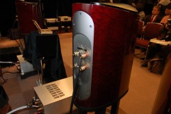 ブースではブックシェルフスピーカー「TAD CR-1」にも注目だ。今回が日本初登場となるCR-1は、CES2009登場時(関連ニュース)よりもさらに進化したかたちでのお披露目となった。キャビネットの構造を改良し不要な鳴きを抑えたほか、内部構造にも手を加えたという。TAD R-1と同じCSTユニットに加え、同社「TAD-M1」から引き継いだ20cmミッドバスユニットを搭載。ネットワークはR-1と同じものを採用している。「CSTなどR-1と同じ要素を搭載しながらもブックシェルフならではの表現力を持っているのが特徴で、小さい部屋への適応力に優れている」(同社技術者)というCR-1。実際に試聴してみると、ウーファーが1基少ない分低音の迫力ではR-1が勝るものの、CSTならではのリアルな音像と空間表現力はやはり素晴らしく、次元の高いサウンドを楽しめた。