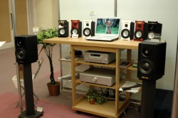 ブースにはレッド/ブラック/ホワイトの鮮やかなデスクトップスピーカー「CASTRON MP01」を展示する。ダクタイル鋳鉄によるエンクロージャーの特性を発揮し、高さ25cmのコンパクトサイズながら高い再生能力を実現している。去年30個限定販売を行いすべて完売したという人気モデルだ。オーディオファンはもちろん「(オーディオのことをよく知らない)音楽を好きな方が購入されることが多かった」と同社代表取締役 臼井憲之氏は説明する。チューニングは音の抜けを重視しているという。デモではこのサイズのスピーカーから鳴っている音とは思えないキレのある音を確認できた。価格はペアで15万円。