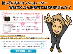 手持ちの不要なインシュレーターを下取りしてもらうことで、欲しいD-PROPシリーズのインシュレーターが、よりお買い得な価格で入手できる。インシュレーター下取りキャンペーン専用査定フォームに、必要事項を記載して送信。買換え特別プライスが案内されるというもの(査定無料)。