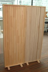 まず“SPECIAL EDITION”は、同社の調音パネル「model2」と「model3」の機能を1枚で兼ね備えたもの。赤松集成材の一枚板をランダムに削り取った板と桐材を裏表に配しており。360度回転させることで反射も吸音も行うことができる。価格は490W×1,170H×80Dmmの「S-1100」が¥38,000(税込)、490W×1,460H×85Dmmの「S-1500」が¥45,000(税込)。