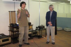 「ハイエンドショウトウキョウ2009スプリング」の音元出版ブース、2日目最後のイベントとなった18:30の回は、「最新のレコーダーで生録を楽しむ」をテーマにした石田善之氏による講演。21日に発売されたオーディオアクセサリー133号にも掲載中の、最高音質、音源を自作する連載のなかで録音した信越線の蒸気機関車走行音などが披露された。
