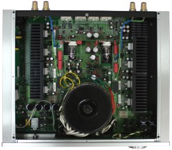 こちらも同社の製品の特徴である、真空管とトランジスターをハイブリッドで使用したプリメインアンプ。プリ部には6922EH Electro Harmonix真空管を採用している。