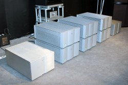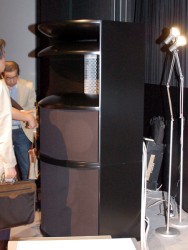 サイズ氏が設計を手掛けたスピーカーシステム。914W×1,829H×686Dmm/181kgと非常に大型で、そびえたつその容貌はまるで大黒柱のようだ。