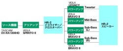 チタン振動板を使用したトゥイーター、38cmミッドベースユニット、46cmサブベースユニットを搭載した3ウェイ3スピーカー。ドライバーはJBLのプロフェッショナルドライバーユニットを採用している。再生周波数帯域は18Hz〜23kHz。高域/中域/低域それぞれに1台ずつアンプをつないだトライアンプ駆動にも対応する。