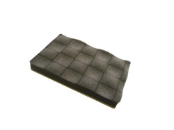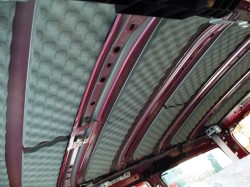 「レアルシルト・アブソーブ」は、この「レアルシルト」と、セキスイ独自の技術によって開発された高発泡ポリエチレン「ソフトロン」とのハイブリッド構造を採用。耐熱温度は80℃。各種難燃試験をクリアした優れた断熱・緩衝材であり、表面に特殊加工を施し、気泡表面積(発泡セルの開放部)を増やして吸音効果を施している。雨水を吸い込まないため、ドアのアウターパネルにも貼り付けて使用可能だ。
