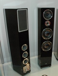 今年創立60周年を迎えたHECOは、その集大成というフロアスタンディング型の「THE STATEMENT」(1999ユーロ)を展示。このモデルは同社のトップモデルにあたり、センターキャップにカーボンファイバーを採用した2基のウーファーを持つ強力なユニット配置としている。また、特徴的なのがターミナル部。ホット側のハイ/ミッドにはそれぞれ二つの端子を用意。付け替えることで帯域の感度を+2dBに調節することができ、試聴環境に合わせたセッティングを可能としている。