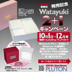 KRYNA&PLUTON(株)では、小型のルームチューニング材「Watayuki」(3,150円、税込・1個)のデビューを記念し、AudioShop PLUTONにて「Watayuki」2個を同時購入の人にもれなく“おくだけKoyuki(非売品)”を1個プレゼントするキャンペーンを12月31日まで実施している。