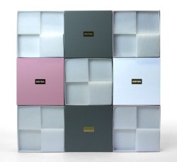 「Watayuki(ワタユキ)」シリーズは、お菓子の箱のような3色で仕上げられた、20cm×20cmと手頃なサイズの紙箱を枠として採用しており、部屋の中に気軽に置くことができるルームチューニング材。KRYNA Proの手軽かつ本格ルームチューニングをコンセプトとする「KQ-1」(6,300円、税込・1個)の効果を活かしつつ、より使い勝手のよいサイズ(縦・横それぞれ約半分)で作られており、なおかつ軽量なため、画鋲などで簡単に固定することもできる。