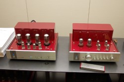 トライオードのブースには、昨日発表された真空管アンプの新製品と、スペンドールの新スピーカーが登場していた。