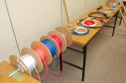 講習会は参加費1万円の事前登録制で、当初予定の定員40名がすぐに一杯になったため、その倍となる総勢約80名での実施となった。オヤイデの電源ケーブル「BLACK MAMBA」(オープン価格、切り売りの予想実売価格4,536円前後、1m)とプラグ/コネクターの「P/Cシリーズ」(P-004/C-004、P-079/C-079、P-037/C-037 、P-046/C-046)からいずれかのモデルを選び、さらにメッシュチューブを好みで選択して装着、市販完成品にはない組み合わせと仕上がりの電源ケーブルを完成させるというもの。