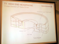 T1の最大の特徴は、「開発に数年を要した」(ワイドマン氏)というドライバーユニットにある。本機は、もともとハイエンドヘッドホンを作ろうとして企画されたものではなく、1テスラ(10,000ガウス)という非常に高い磁束密度を持つマグネットを開発しようという計画が先に進み、結果的にこのマグネットを搭載した最初のモデルがT1になったのだという。ワイドマン氏は「HD800やedition 8と同じ時期になったのは単なる偶然だ」と説明した。