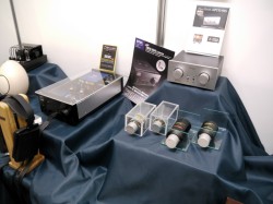 真空管や各種オーディオデバイスを開発・販売するアムトランス。その製品の種類や数は多岐にわたるが、今回は最高級アッテネーター「UATS/UATMシリーズ」をメインに展示。L型パッド型を用いて、常に2本の抵抗だけを経由するピュアストレート方式を採用したもので、内部の素子も音質を徹底的に追求して吟味したという。