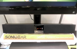 イヤホン/ヘッドホンや2.1chアクティブスピーカーなどラインナップは多岐にわたるが、主力で展開する予定なのは、薄型テレビと一緒に使用するフロントサラウンド機器「SONIC ARRAY 2000」。価格は3万円前後になる予定。